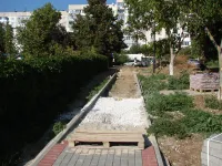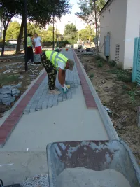 На новых дорожках, ведущих от супермаркета "Яблоко" к самой аллее, также обустройство тротуара продвигается быстрыми темпами.