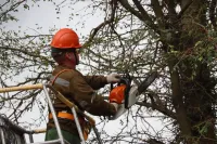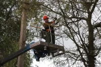 Ведется расчистка территории и спил веток деревьев для последующей установки 22 современных светильников и монтажа 600 метров провода.