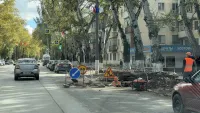 В настоящее время на улице Горького из-за работ по замене тепловых сетей перекрыты частично две полосы дороги. Перед работами установлены предупреждающие дорожные знаки.