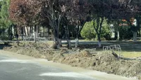 Стоит отметить, что там, где уже сняли бордюры вдоль дороги, осталась траншея. Водителям стоит быть внимательнее и не въехать в нее, ведь её никак не оградили.