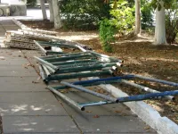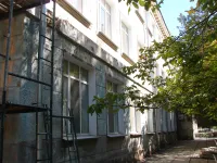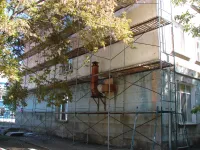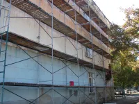 С торцевой части основного здания возвели леса для продолжения фасадных работ, передает КерчьФМ.