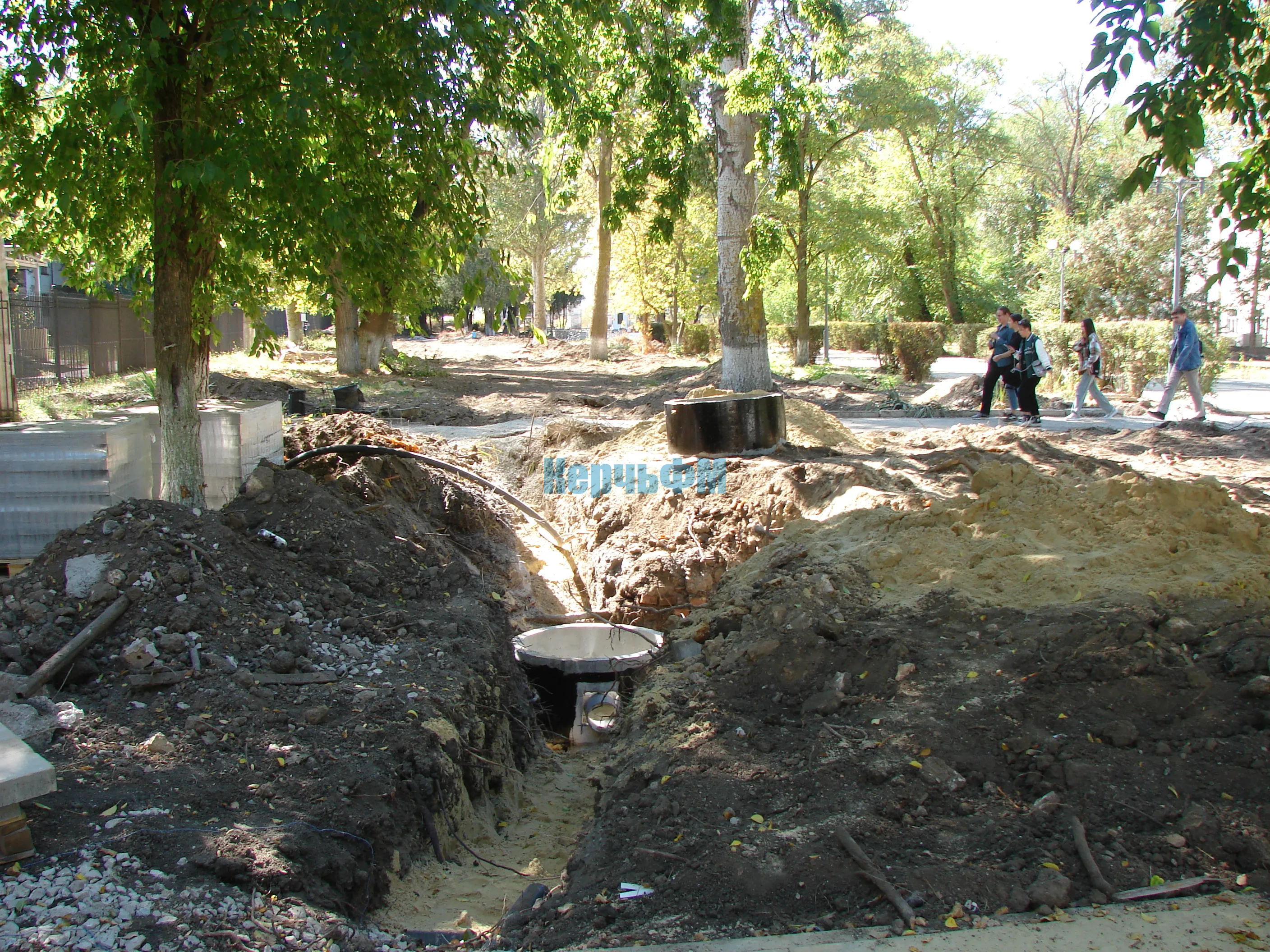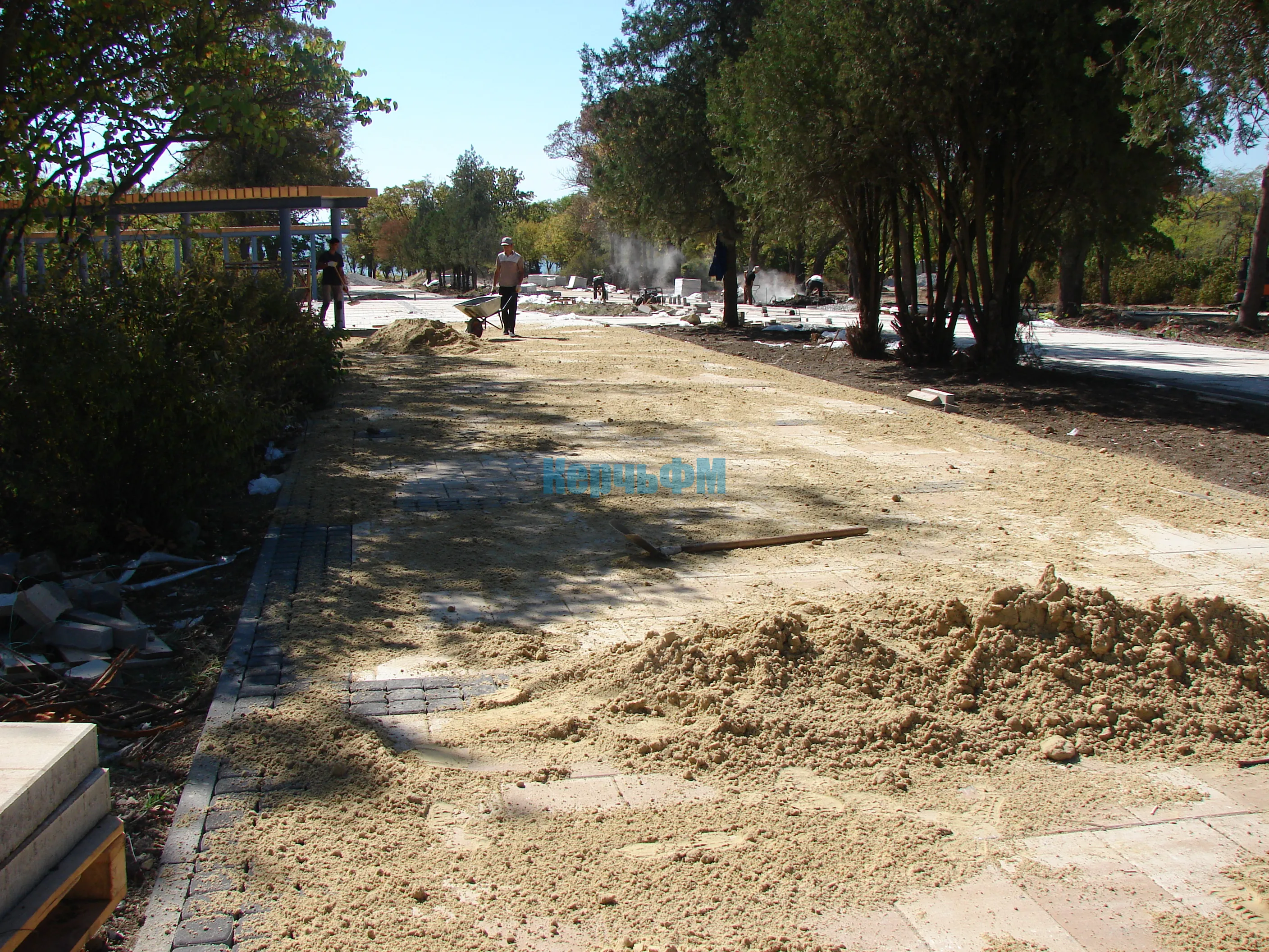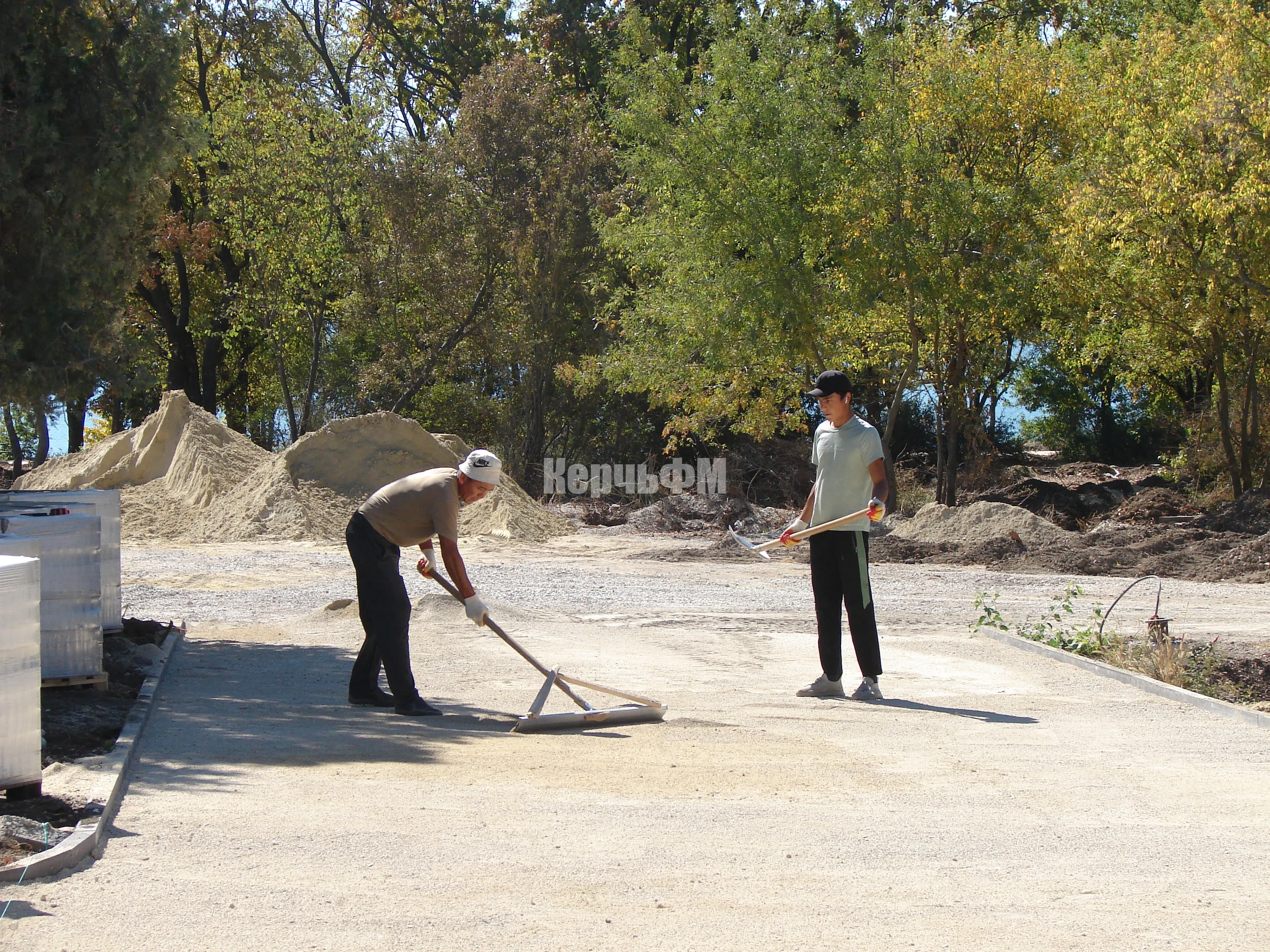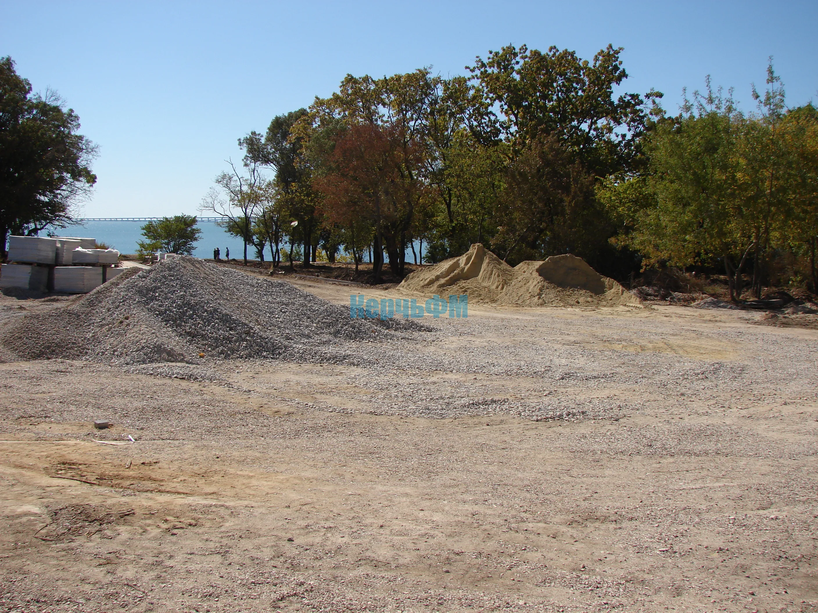 КерчьФМ запечатлел на камеру Приморский парк сегодня, а также разрытие на краю обрыва у моря.