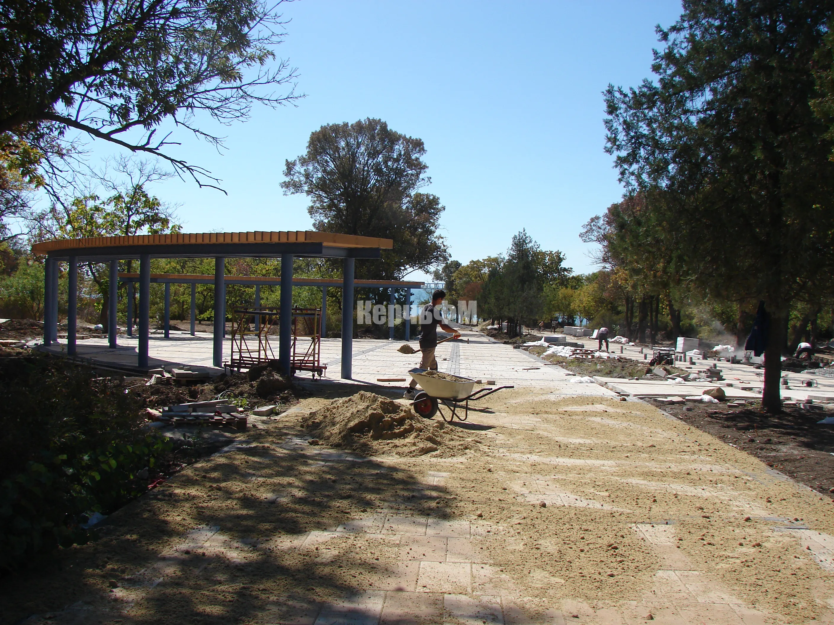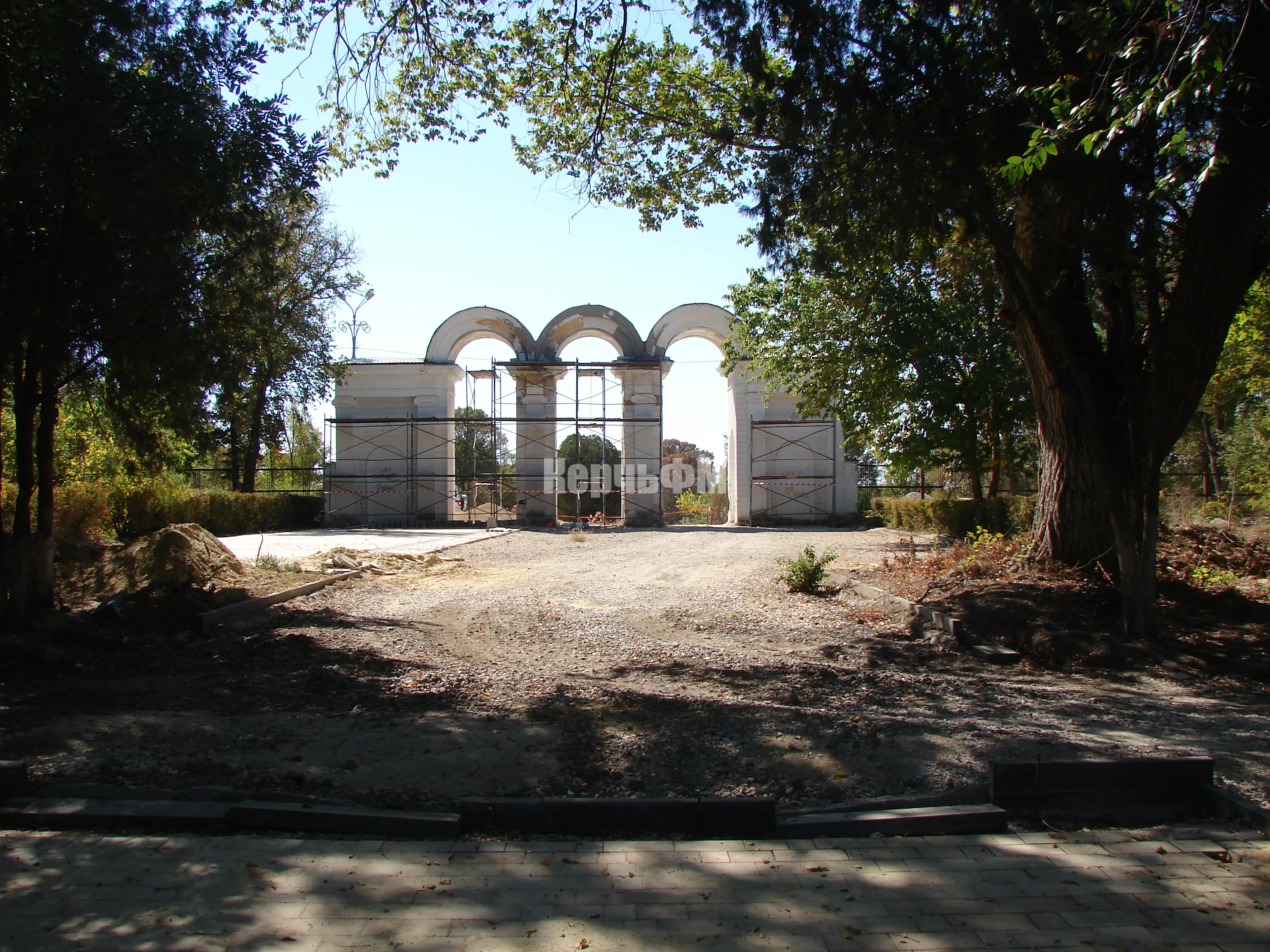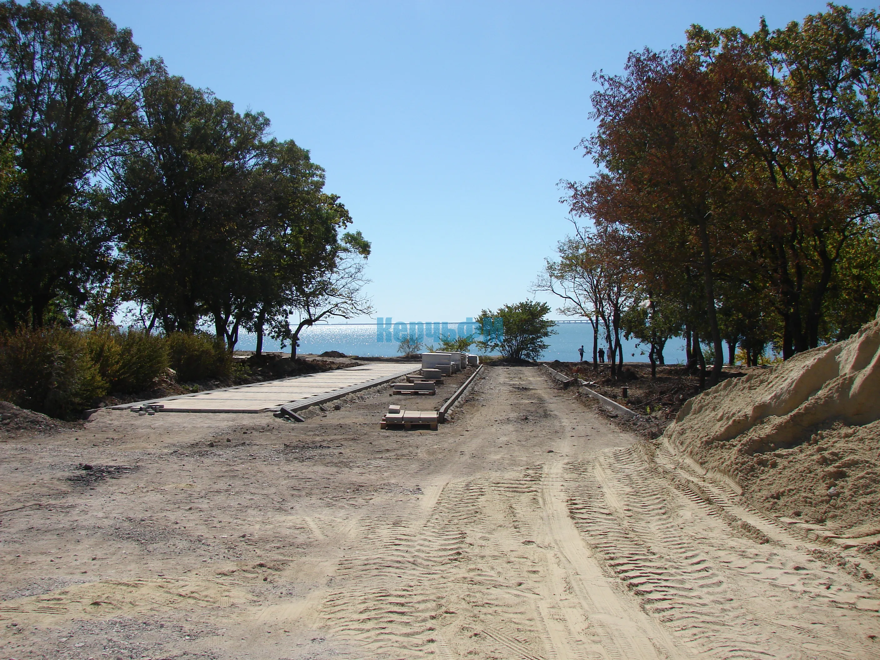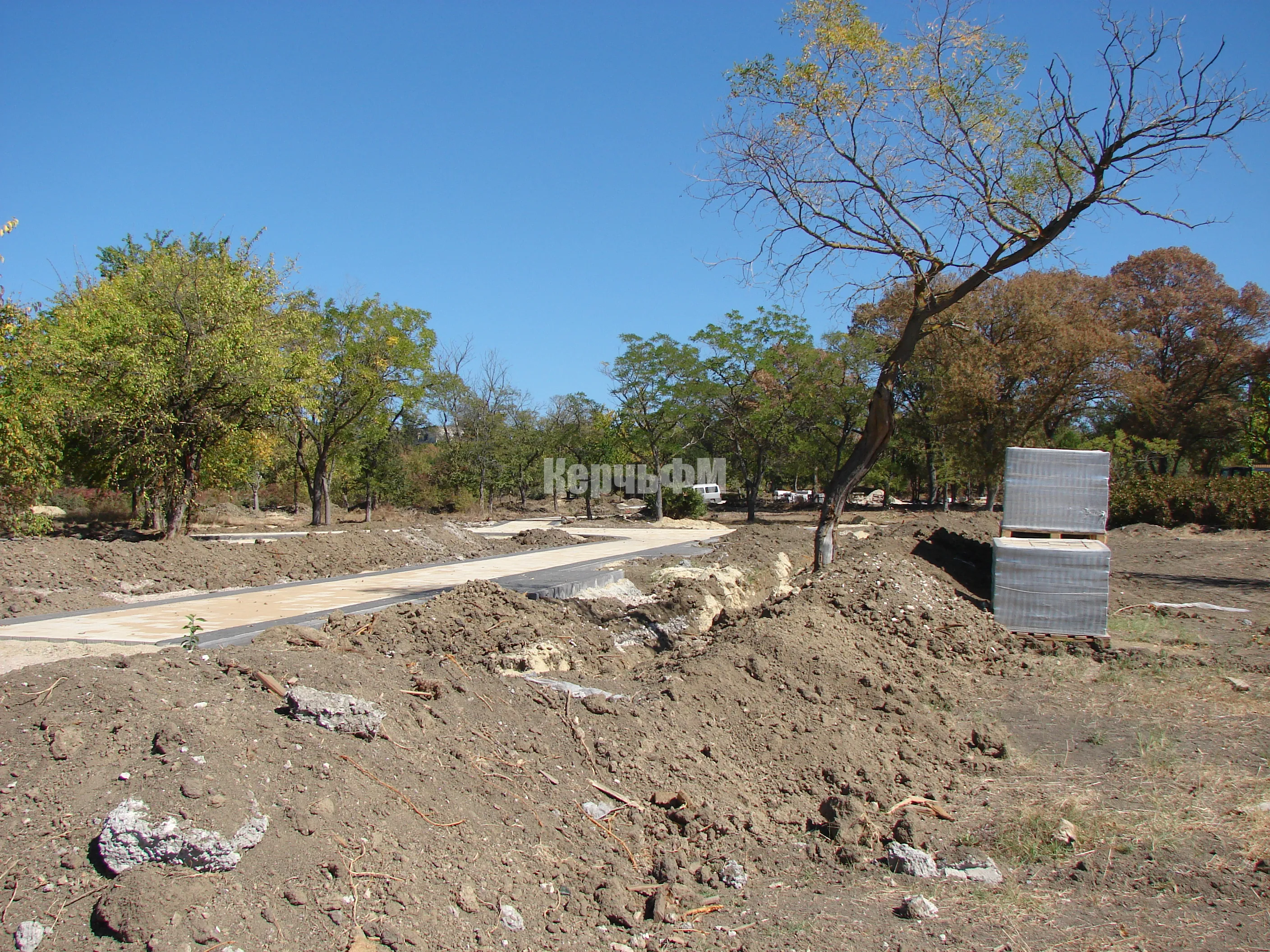 КерчьФМ запечатлел на камеру Приморский парк сегодня, а также разрытие на краю обрыва у моря.