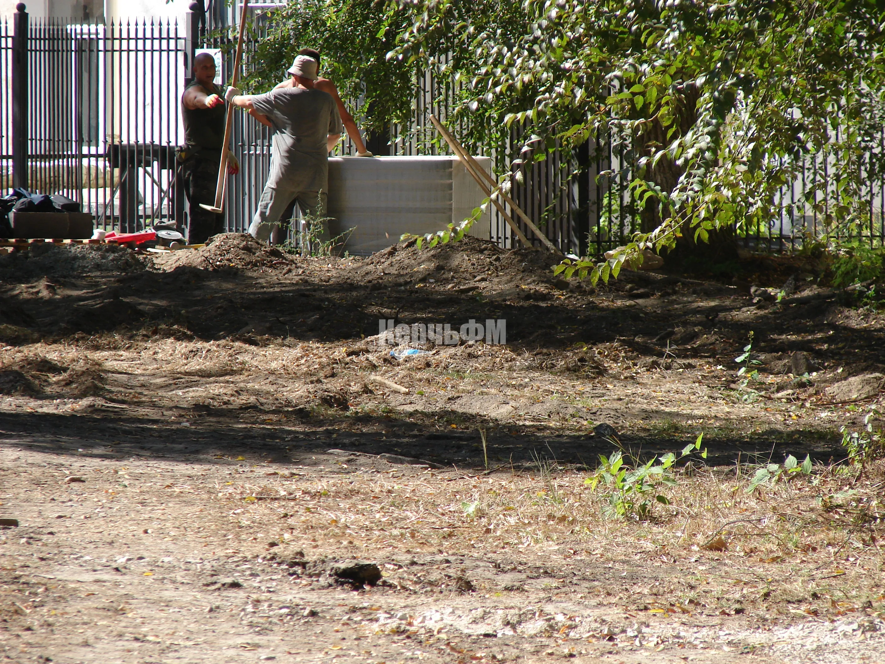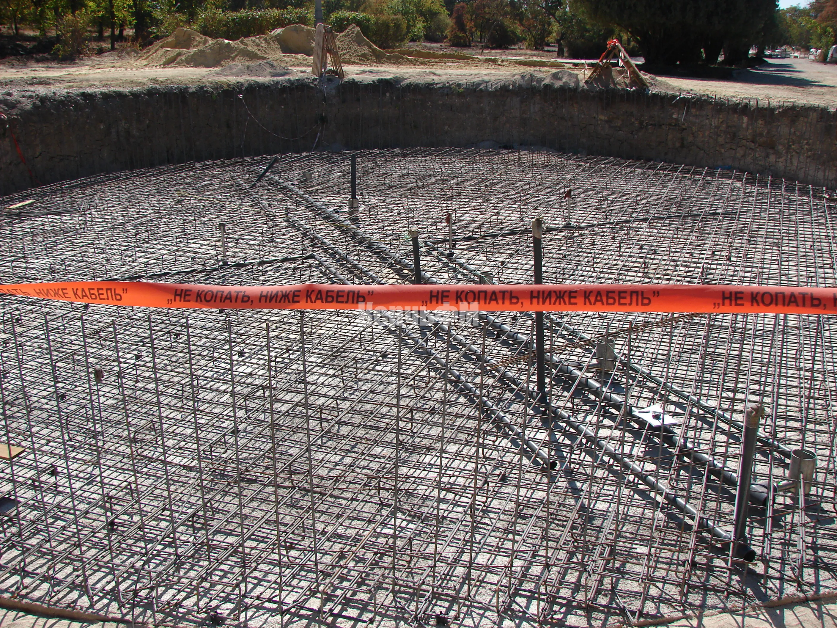 В зоне особого внимания и чаша будущего фонтана. Армированный каркас под будущую железобетонную конструкцию практически готов.
