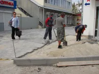 Скорость укладки новых тротуаров у рабочих подрядной организации ИП "Зорина", ведущих благоустройство объекта, достаточно высокая.