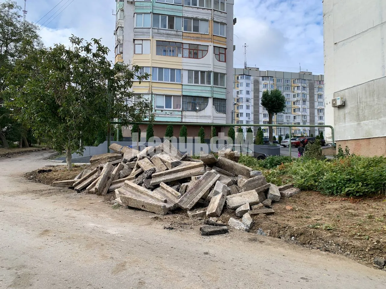 Подрядная организация «Архонт» практически демонтировала все старые бордюры вдоль внутриквартальных дорог и тротуаров. Следующим этапом станет подготовка к установке бортового камня и разметка территории.