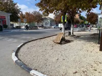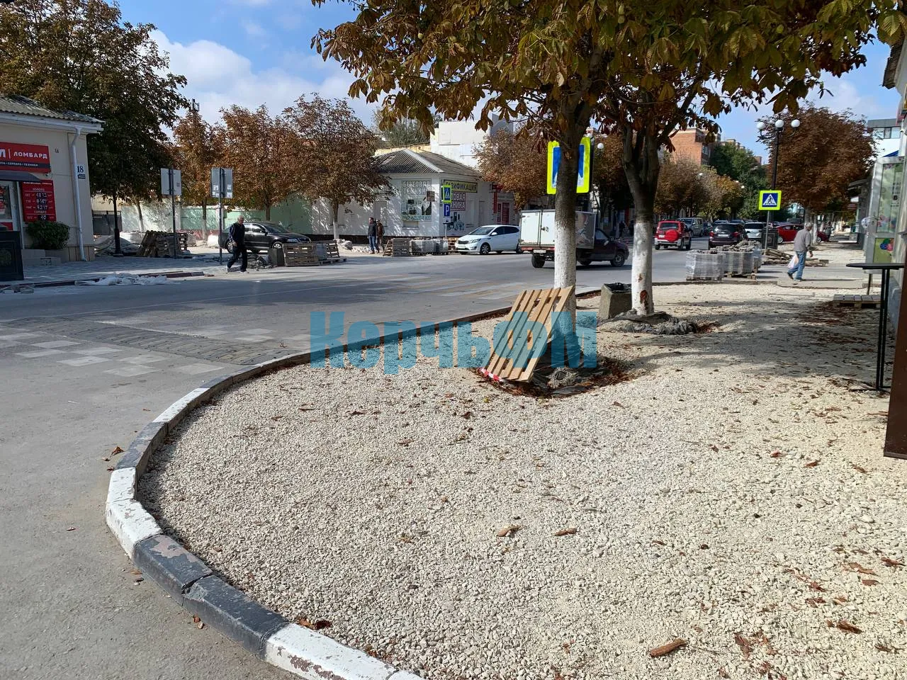 Строители заменили бордюры и уложили около 30% нового покрытия.