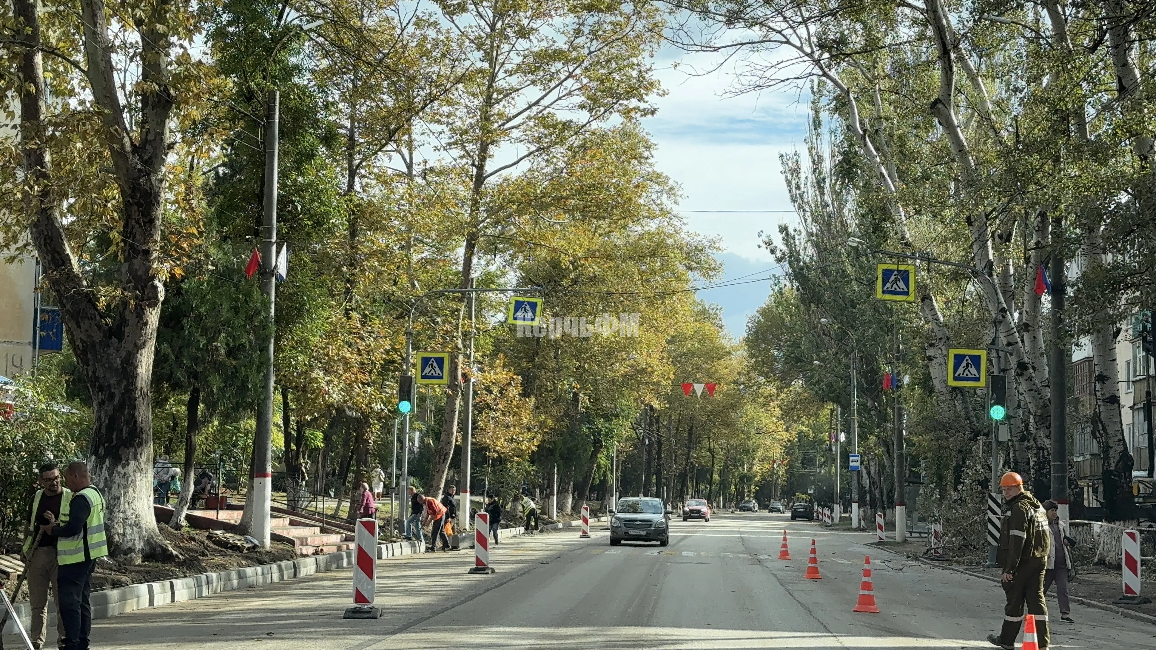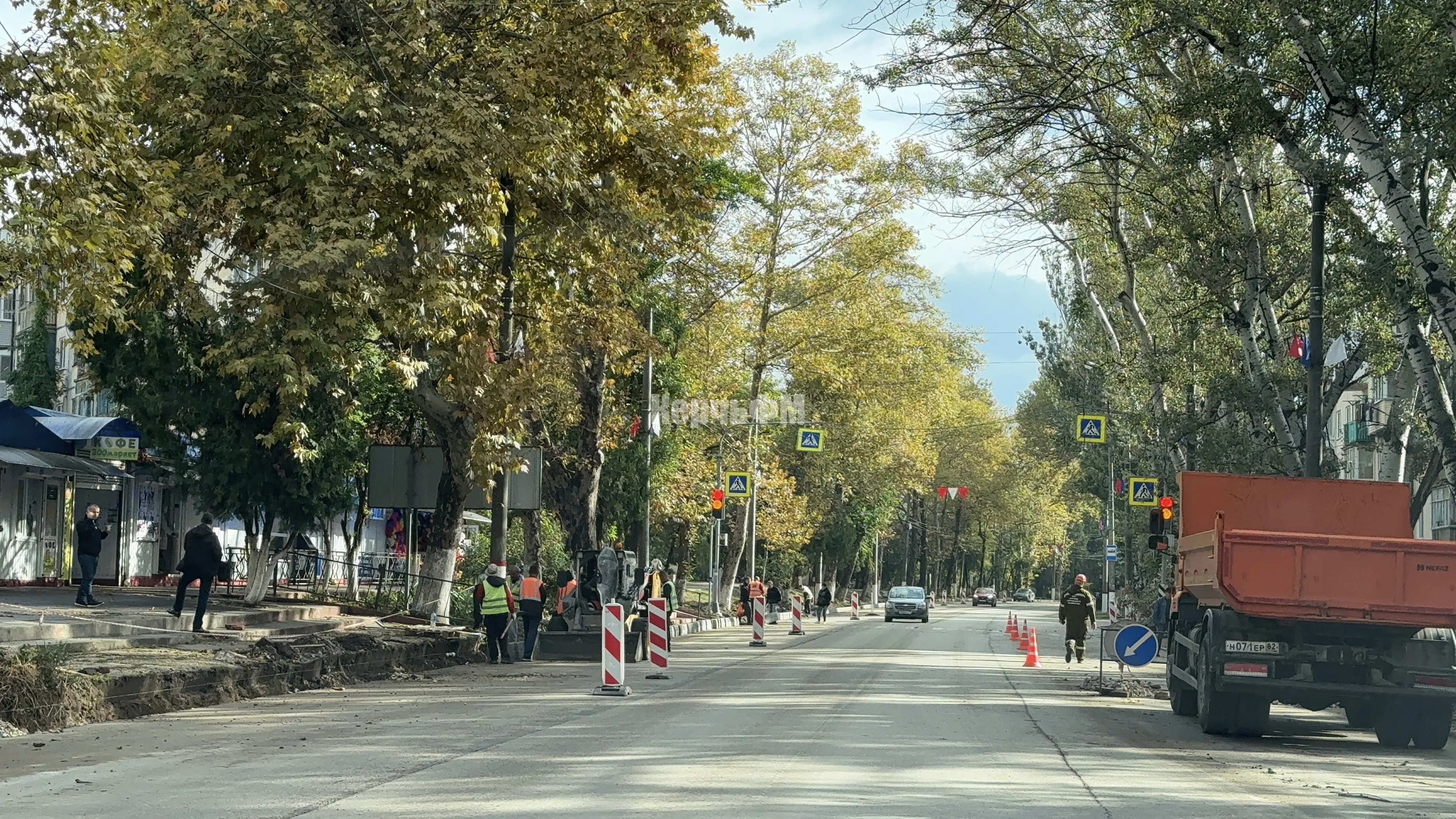 Специалисты продолжают монтировать старые бордюры вдоль дороги. Водителям стоит быть внимательнее на данном участке дороги.