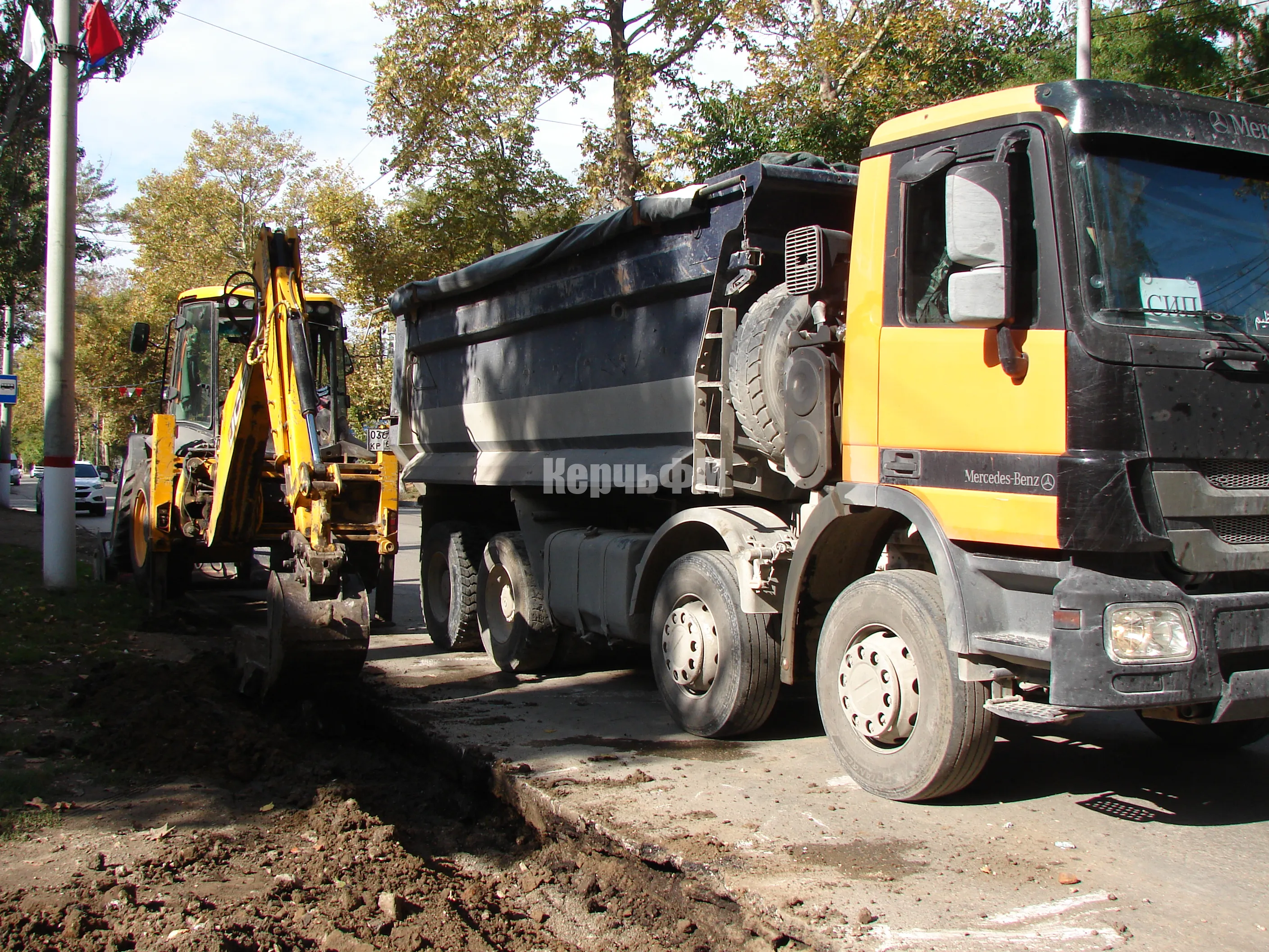 Сегодня работы ведутся в районе остановки "Библиотека" с обеих сторон, передает КерчьФМ.