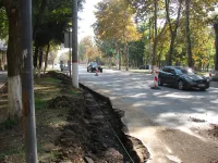 Старые бордюры демонтируют и сразу начинают готовить траншеи к укладке новых.