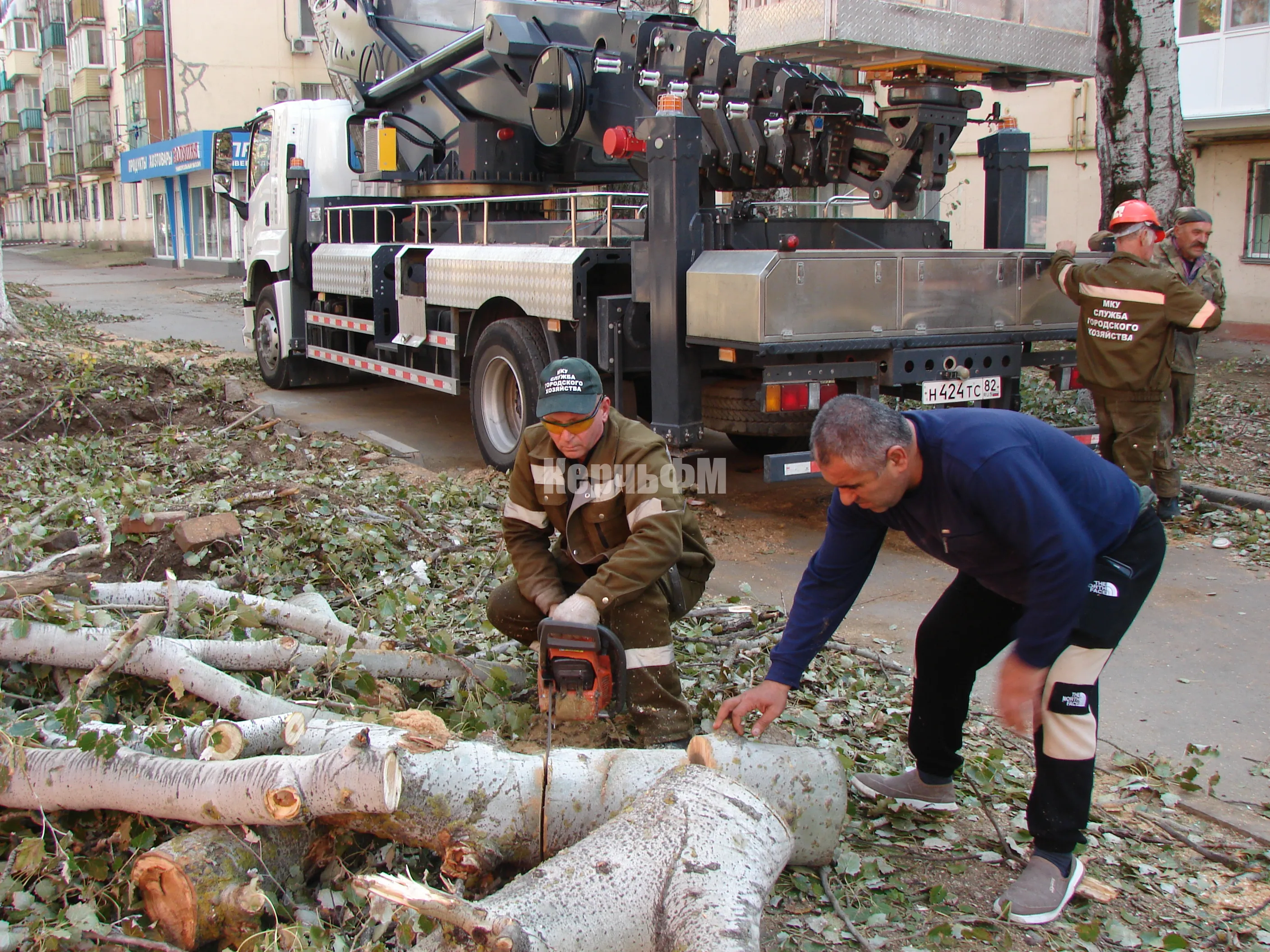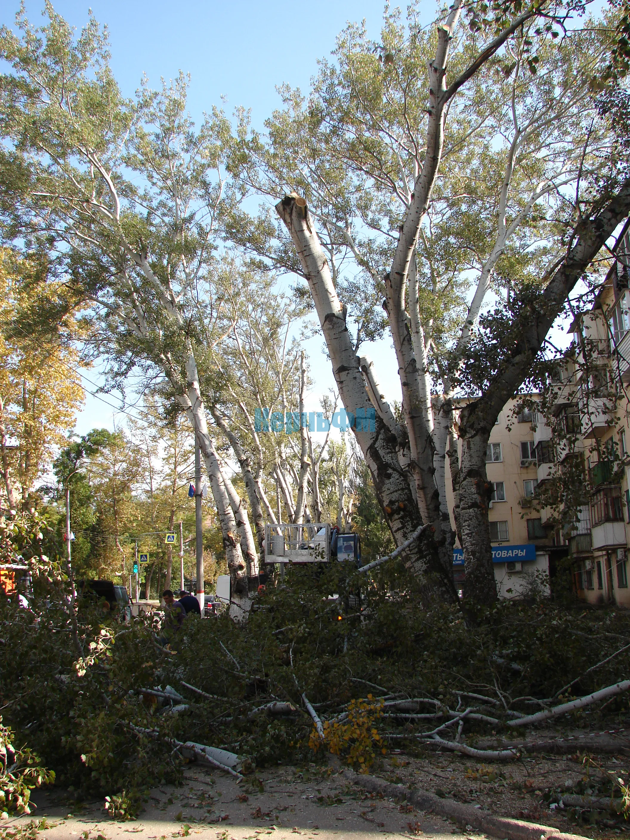 В настоящее время Служба городского хозяйства спилила стволы деревьев почти наполовину, включая аварийные ветки.