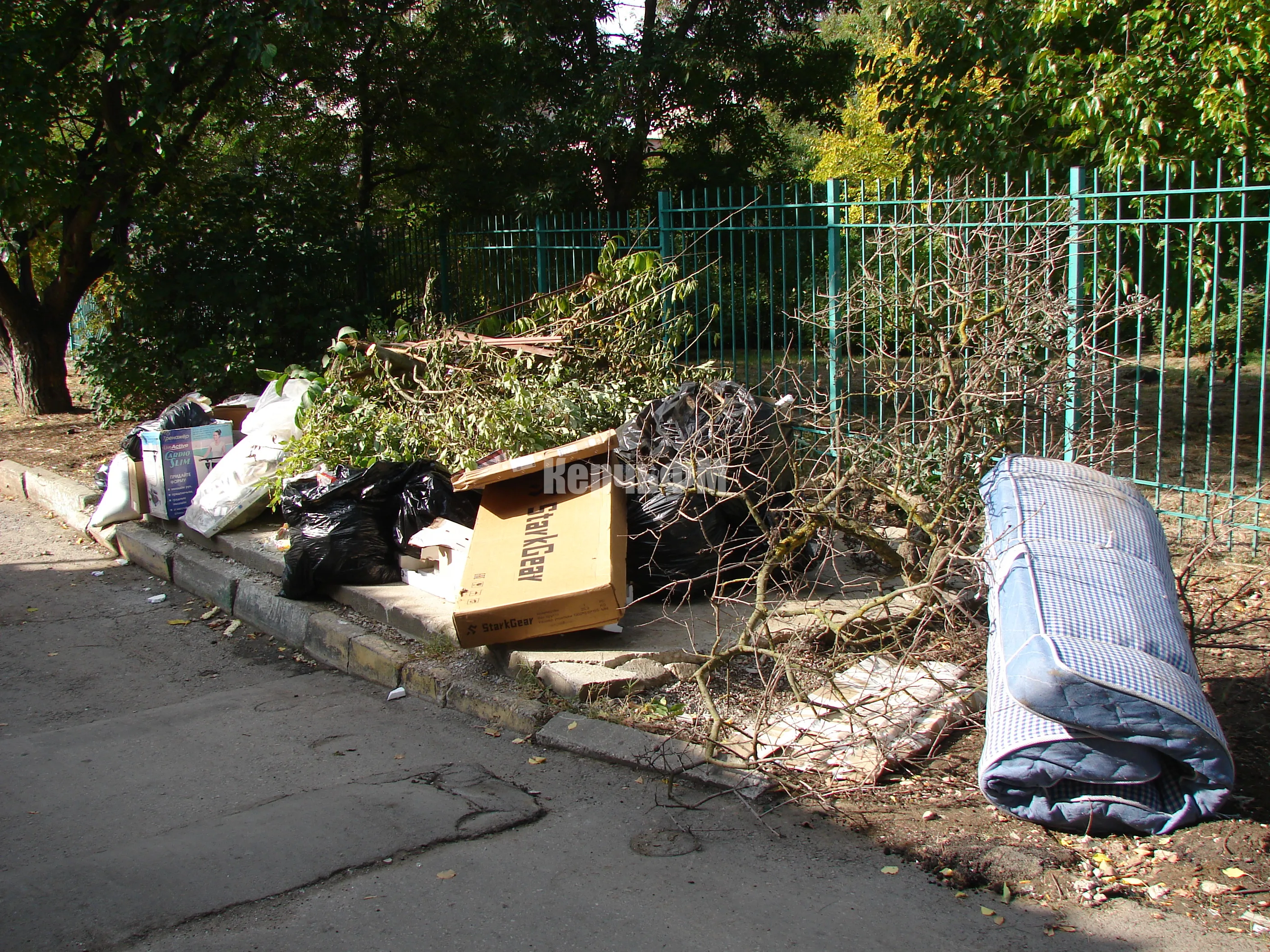 Мусорных контейнеров здесь нет, а ближайший контейнер-"лодочка" находится далеко.