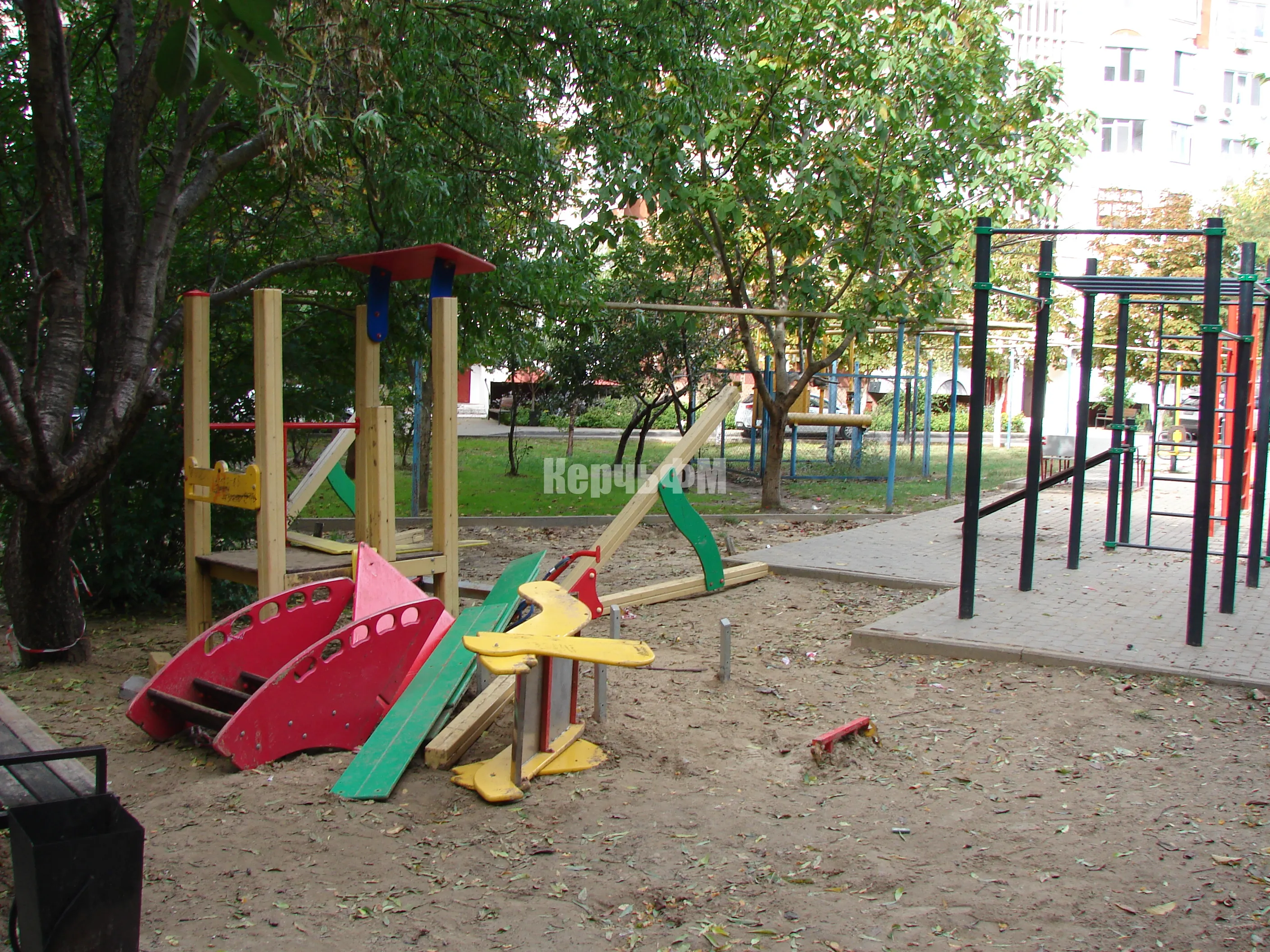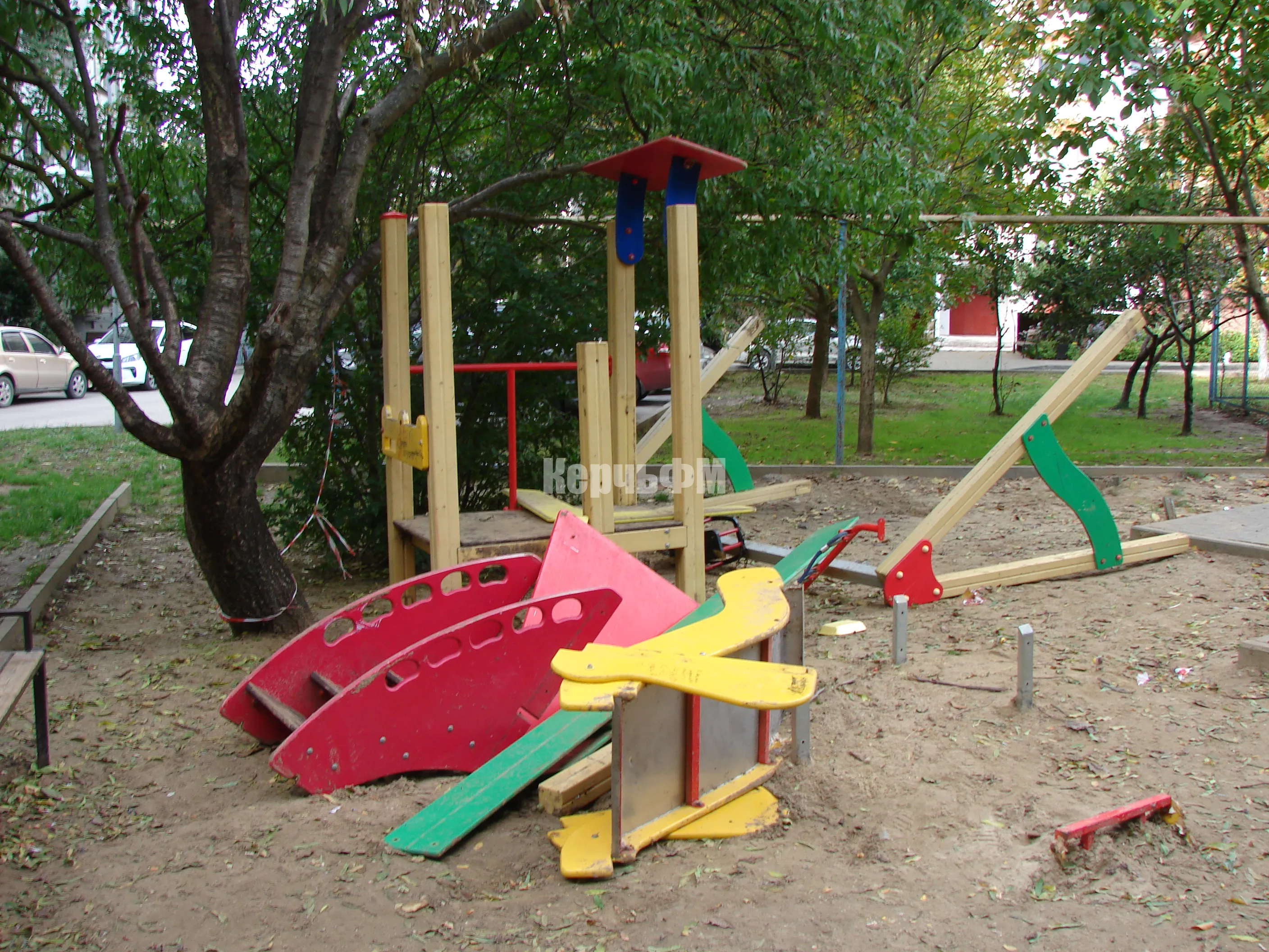 Как в Керчи демонтируют старые качели и горки