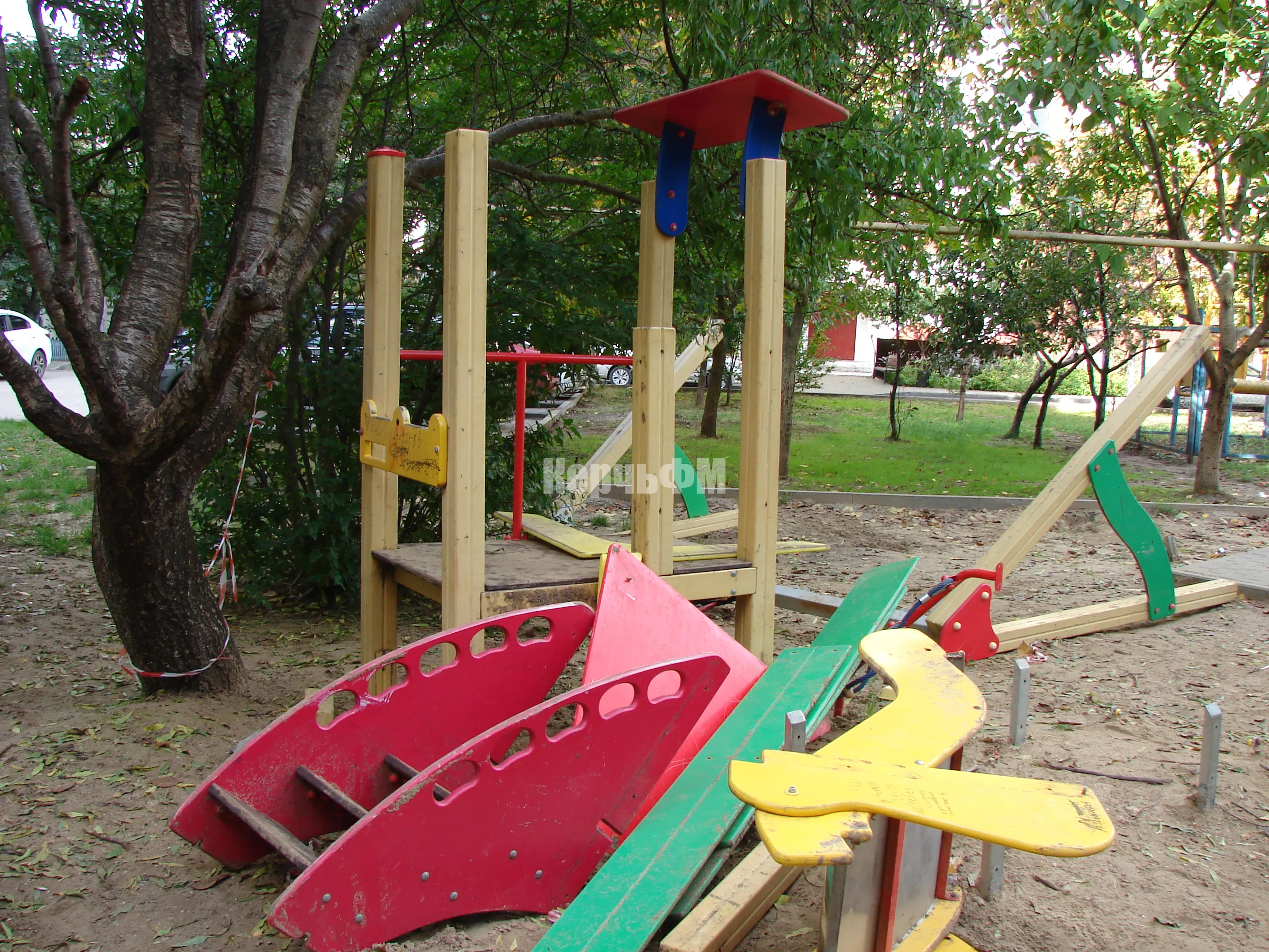 Стоящую тут же горку для самых маленьких тоже открепили от основания.