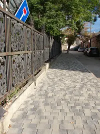Тротуарная плитка демонтирована полностью и пешеходные дорожки обнесены новым поребриком.