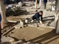 Подрядчик сегодня завершал работы по укладке новых тротуаров с обеих сторон улицы Козлова на участке от Советской до Карла Маркса.