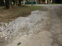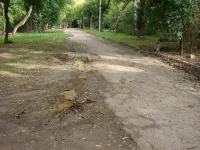 Тротуар вдоль него разбит и если проходит дождь, то вести родителям детей в садик на Энгельса, 8 практически невозможно.