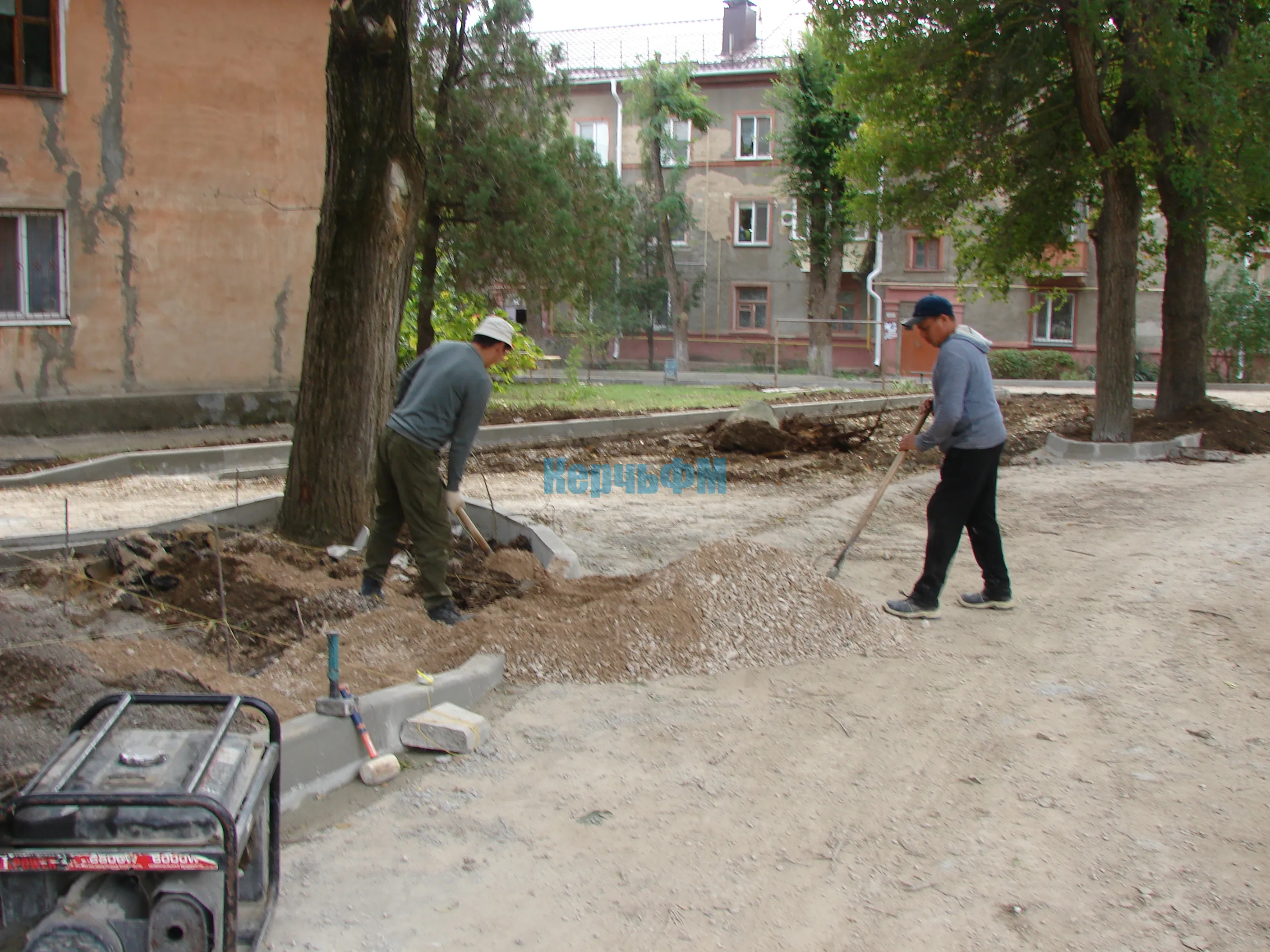 Работы по благоустройству придомовых территорий кипят сегодня одновременно сразу в нескольких дворах района улиц Славы, Студенческой и Казакова, передает КерчьФМ.