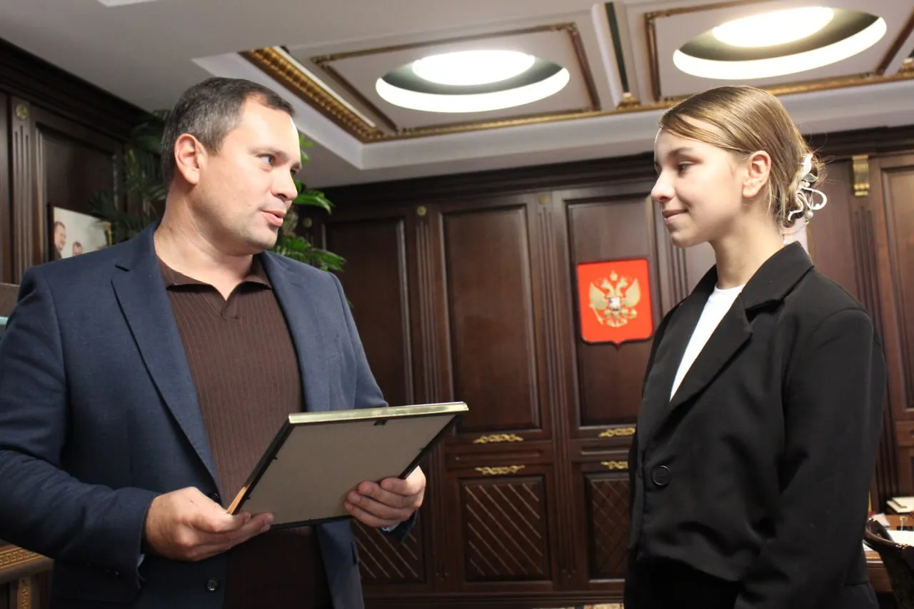 Ирина Мезавцова передала от Сергея Аксенова искренние слова благодарности талантливой керчанке и ее педагогам, вручила Благодарственные письма.