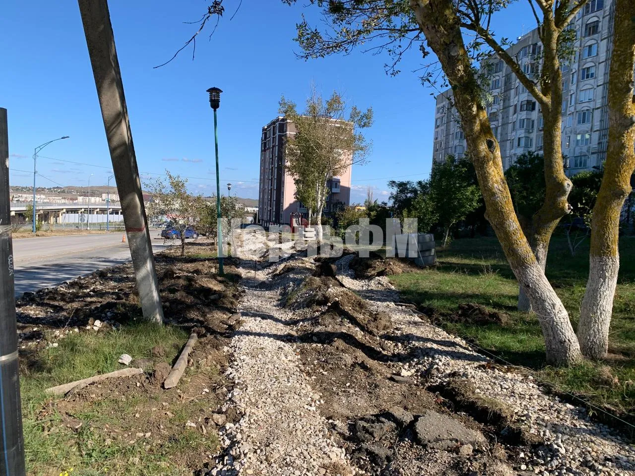 В микрорайоне Верхний Солнечный продолжаются работы по благоустройству.