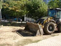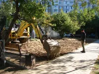 После полного демонтажа всех старых игровых элементов на детских площадках во дворе по Сморжевского, 1 тяжелая техника приступила к подготовке территории для новых.