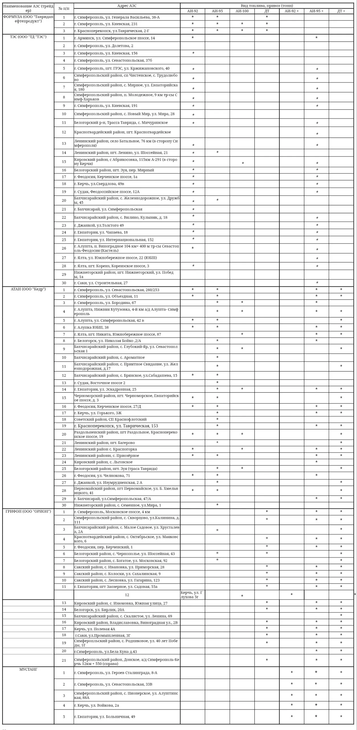 Администрация Керчи также опубликовала список, где можно заправить свой транспорт по Крыму.
