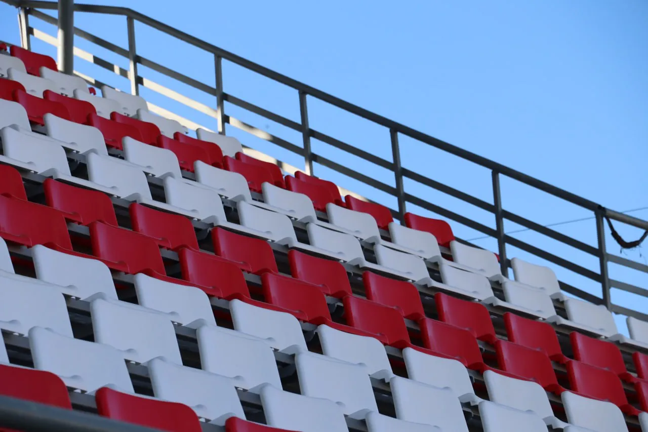 - Установка сидений на западной трибуне. Подготовка к монтажу на восточной.