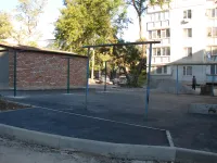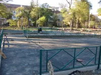 Уложен асфальт на игровых зонах, а также установлено их ограждение.