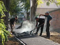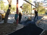 На придомовой территории сразу нескольких МКД района Всесоюзной, 10 работы по благоустройству не сбавляют темпа.