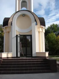 У входа установили табличку с названием часовни и указанием тех, кому она посвящена.