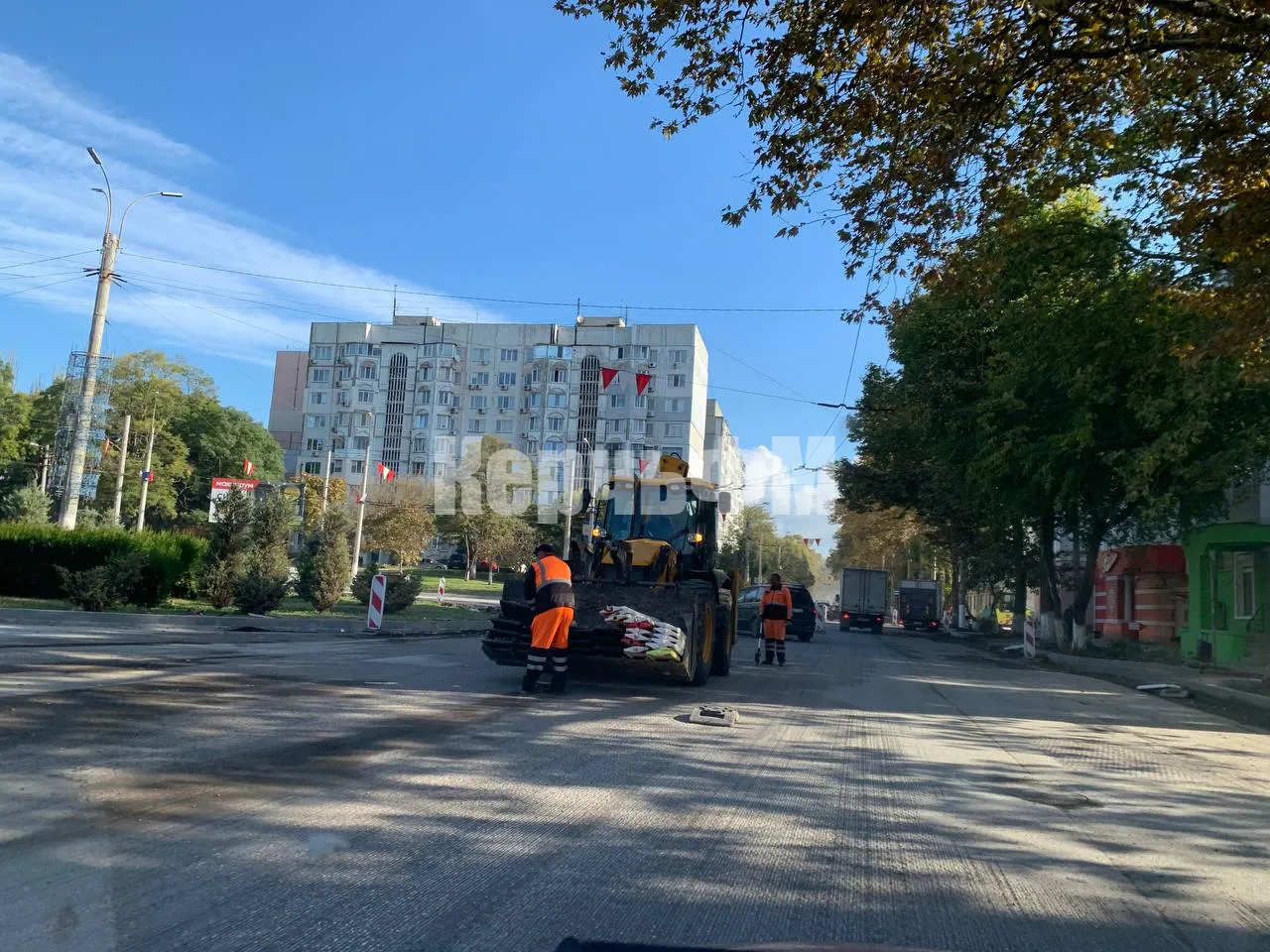 Демонтаж бордюров практически завершен. Работает несколько единиц тяжелой техники.