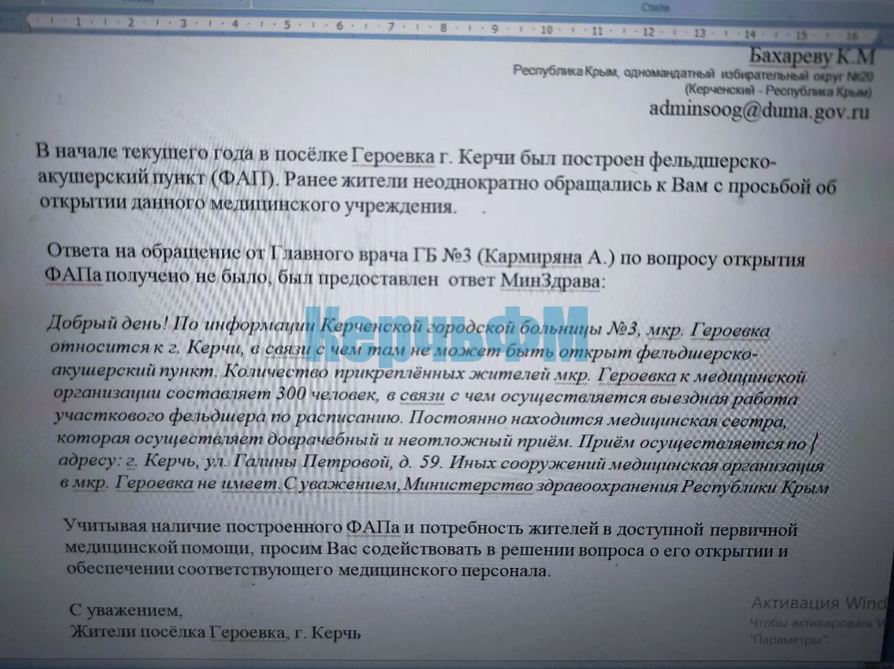 Они поделились с КерчьФМ последним ответом ведомства на запрос.
