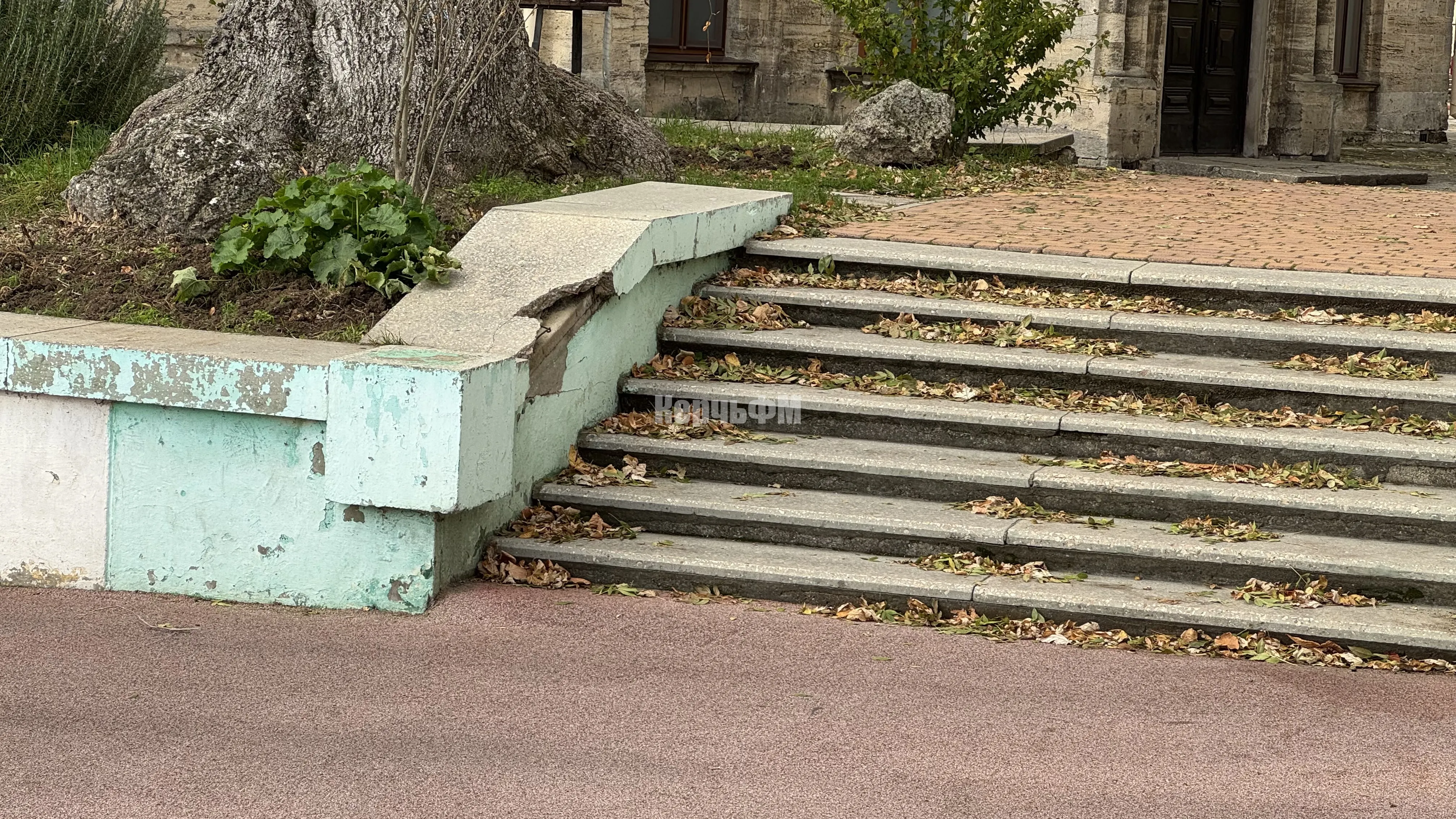 Особую тревогу вызывает повреждённое ограждение у фонтана. В одном месте конструкция сломана, и через образовавшийся проём маленькие дети могут упасть в чашу. Падение с такой высоты может привести к серьёзным травмам.