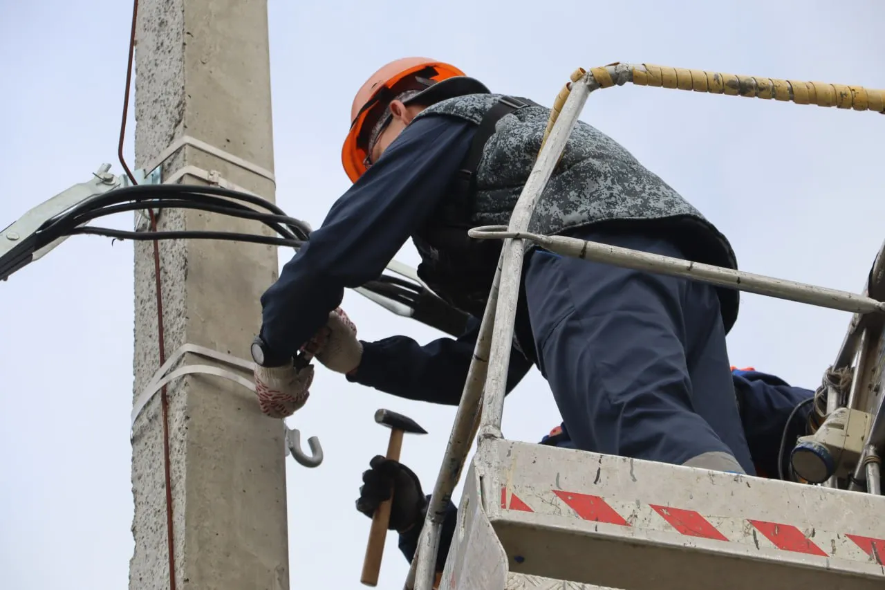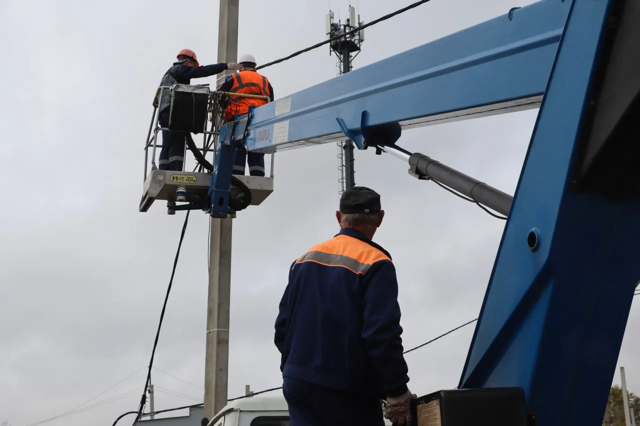 Специалисты предприятия устанавливают крепежные арматуры для протяжки 1300 м самонесущего изолированного провода. В последующем на столбах разместят около 25 современных светильников.