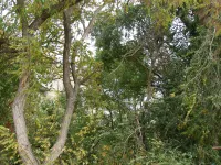 Если посмотреть вверх и приглядеться, то можно увидеть обломанные ветки, которые не упали на землю только потому, что застряли между зарослями.