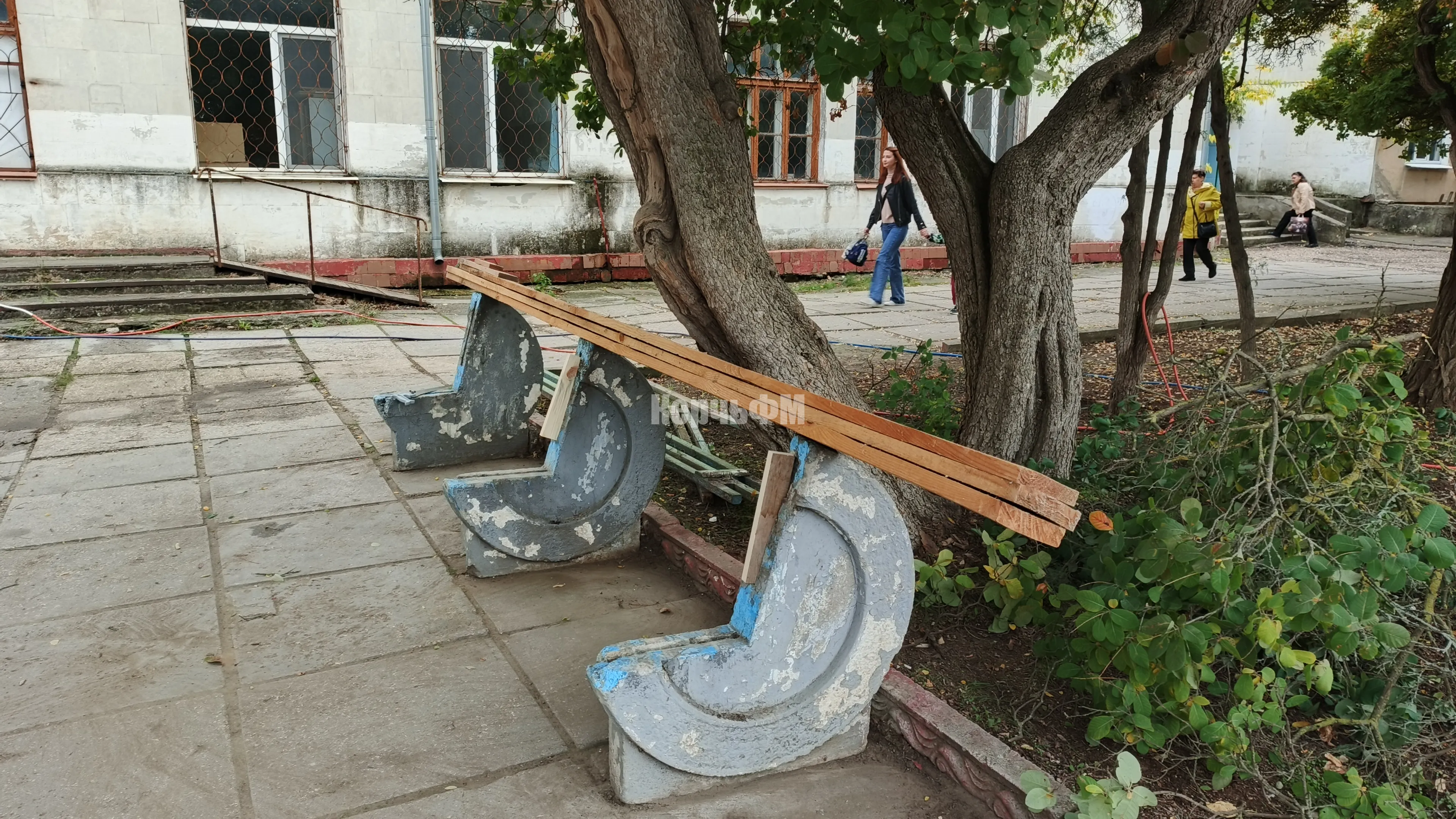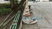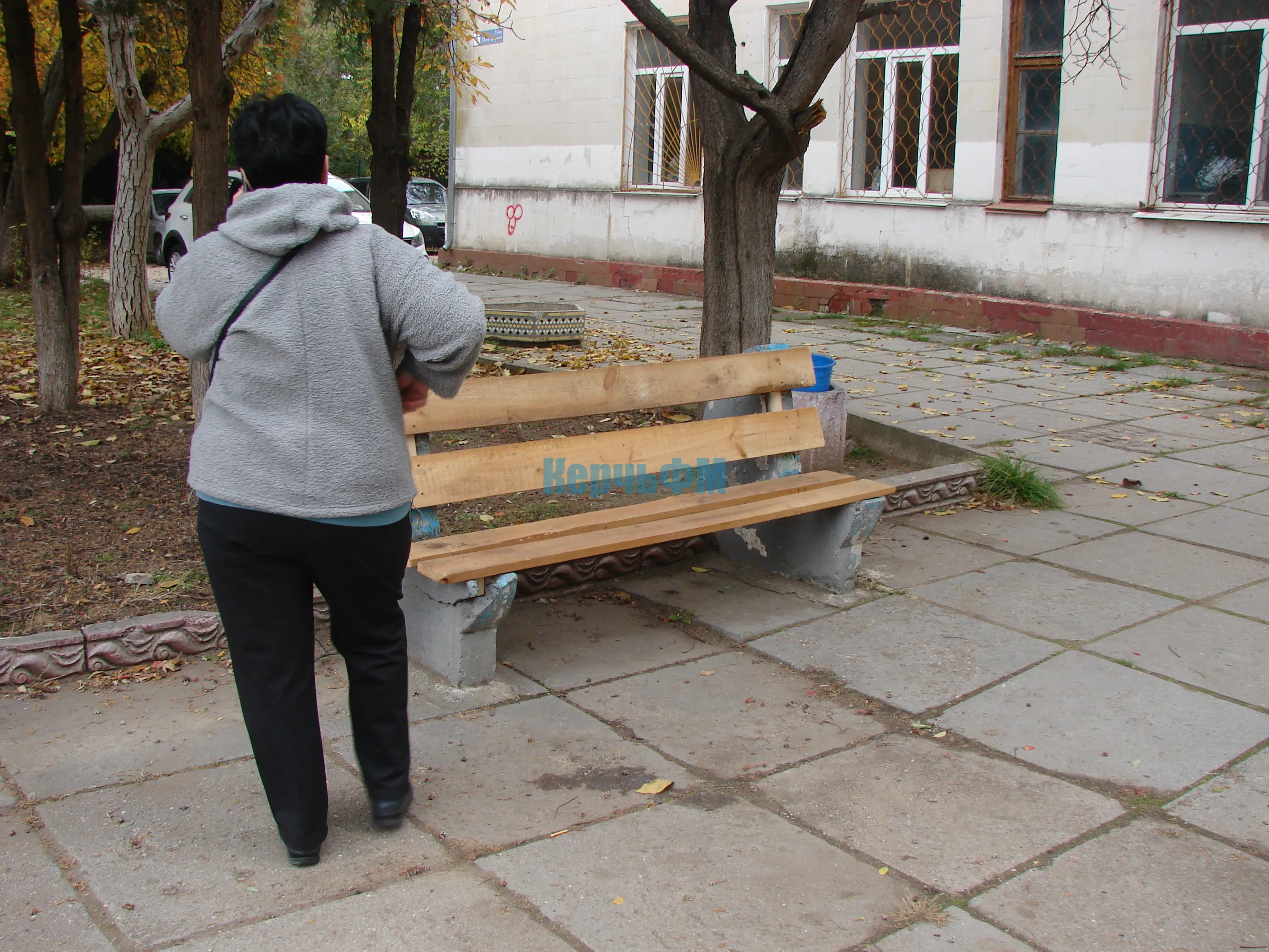 В минувшую пятницу у керченской поликлиники №2 начали демонтировать две старые и поломанные лавочки.