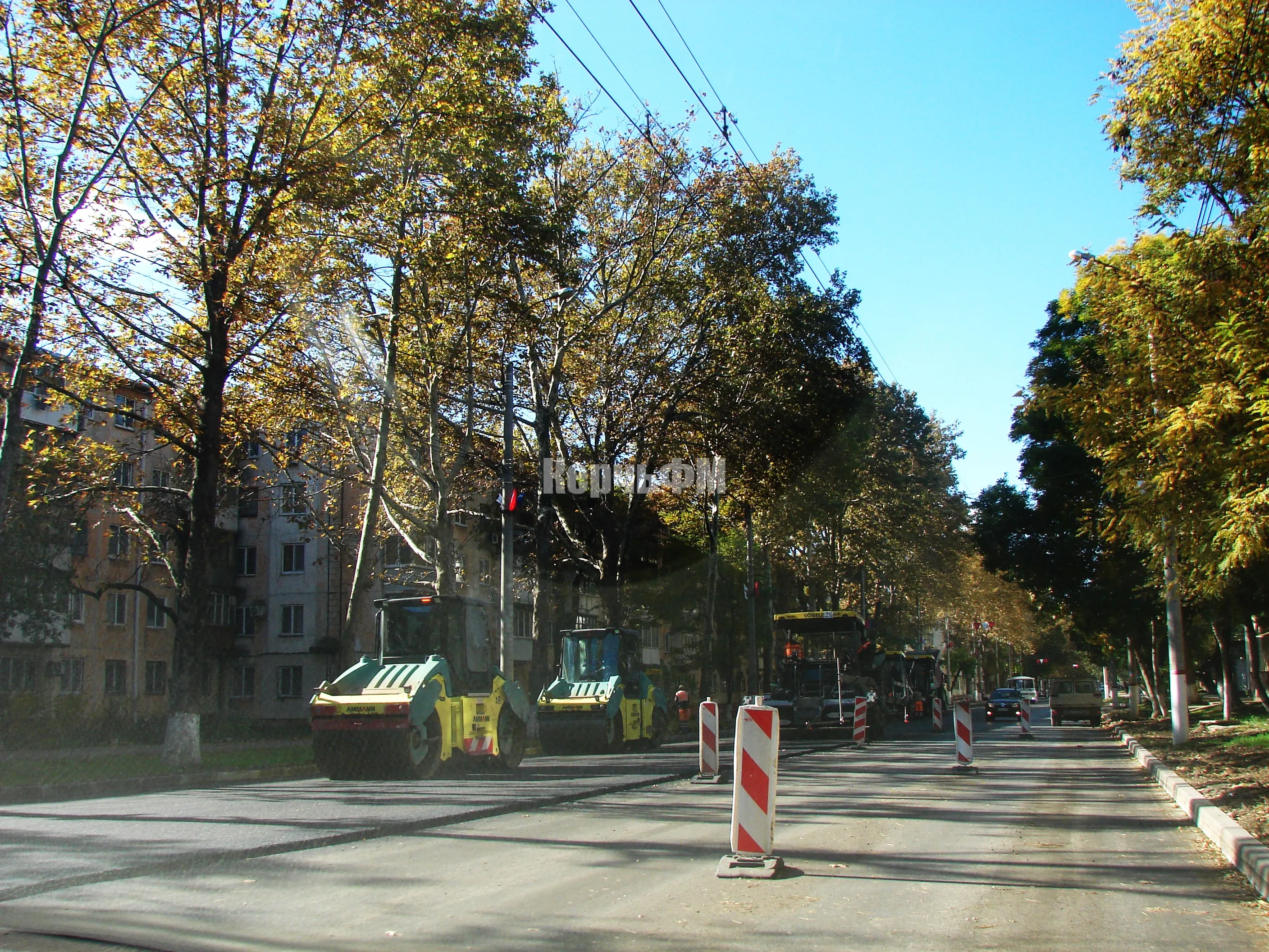 На улице Горького в Керчи укладывают второй слой асфальта