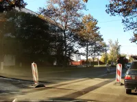 Первый слой был уложен от улицы Пошивальникова до улицы Гайдара по всей ширине дороги, включая Горьковское кольцо.