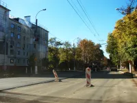 На улице Горького продолжается укладка нового асфальта.