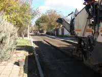 Техника проводит фрезерование, снимает верхний слой грунта, выравнивает дорогу. Впереди засыпка щебня и укладка нового асфальта.