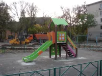 На детской и спортивной площадках установлены первые тренажеры и игровые элементы.