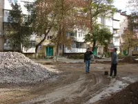 Ведется подготовка территории под площадки для сушки белья, а также спортивные и детские.