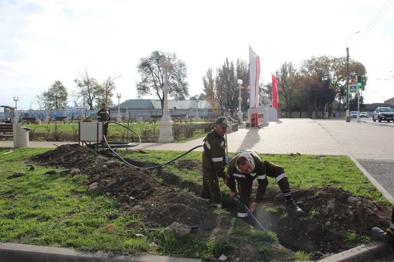 В сквере «Монетка» завершается монтаж системы автоматического полива, передает КерчьФМ.