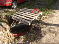 В начале были демонтированы все бордюры вдоль подъездных дорог и тротуаров.