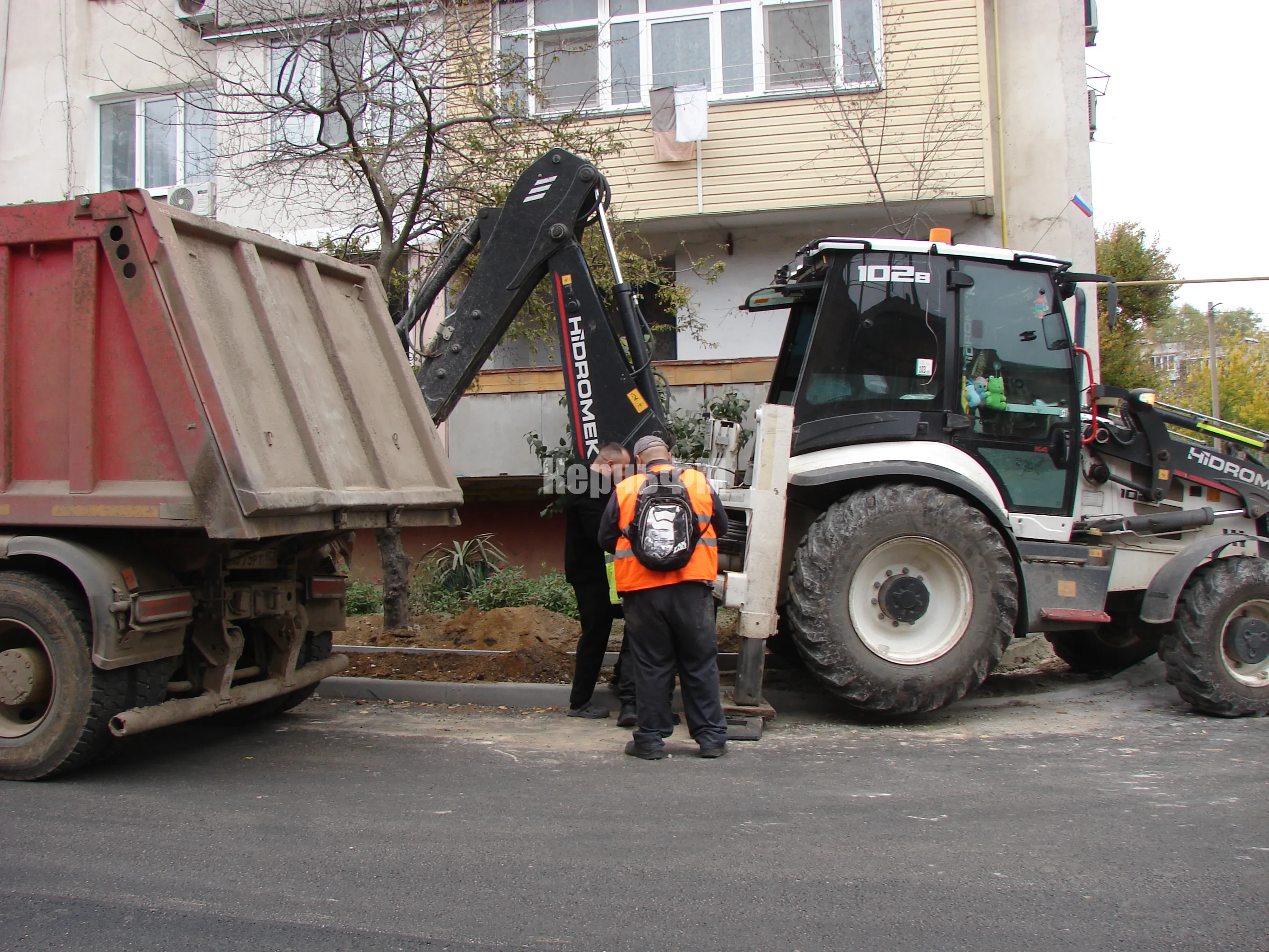 На 2-м Портовом переулке продолжаются работы по ремонту дороги и тротуаров.