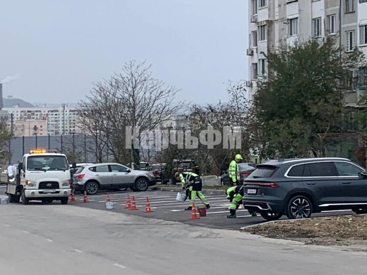 На них сегодня продолжают наносить разметку для четкого разграничения мест стоянки автомобилей.