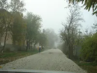 Далее, от Назаренко до улицы Сергея Лазо, дорогу выровняли и отсыпали щебнем, уложили и утрамбовали фрезерат.
