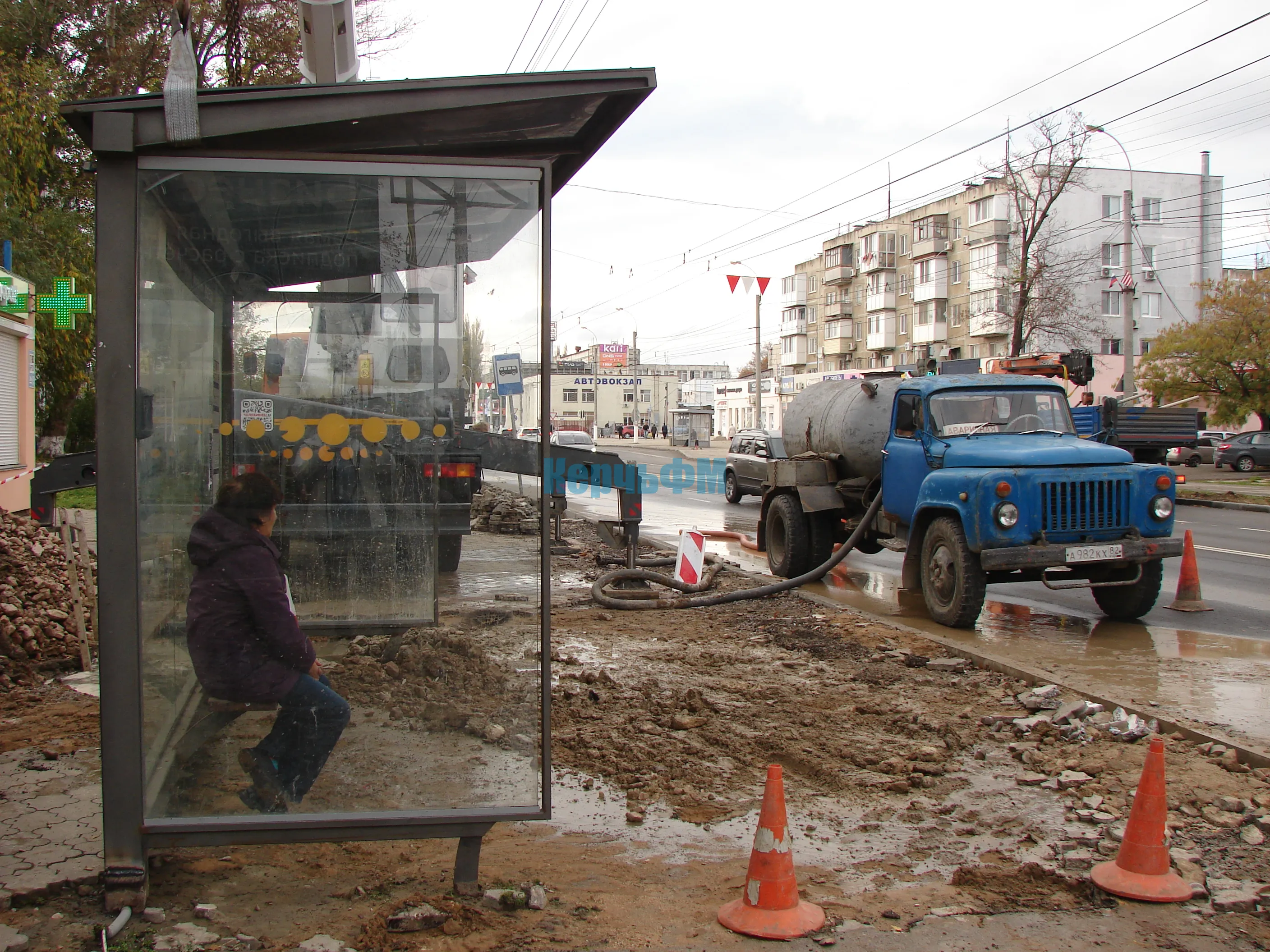 Под остановкой "Авиакассы" в Керчи ремонтируют водовод