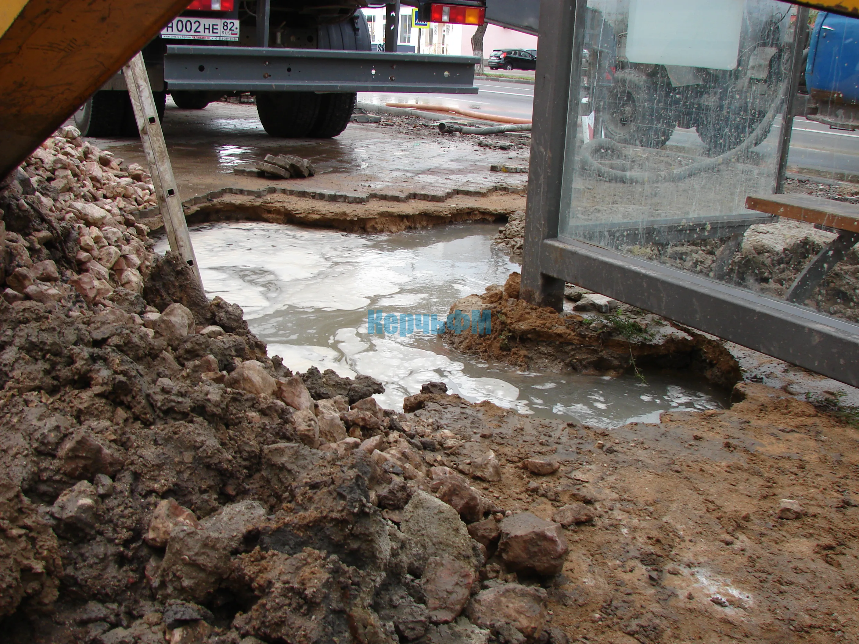 Керченский водоканал ликвидирует порыв своих сетей на остановке "Авиакассы" по направлению из центра.