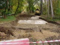 Далее дорога была выровнена и засыпана щебнем вплоть до самого проблемного ее участка, где фиксируются постоянные порывы водовода.